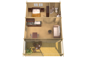 This model provides room for a kitchen, sleeping area, bathroom, and seating, all centered around a comfortable main living space. Its classic cabin form and refined proportions make the Frontier Cabin a versatile option for adding meaningful living space to a property.