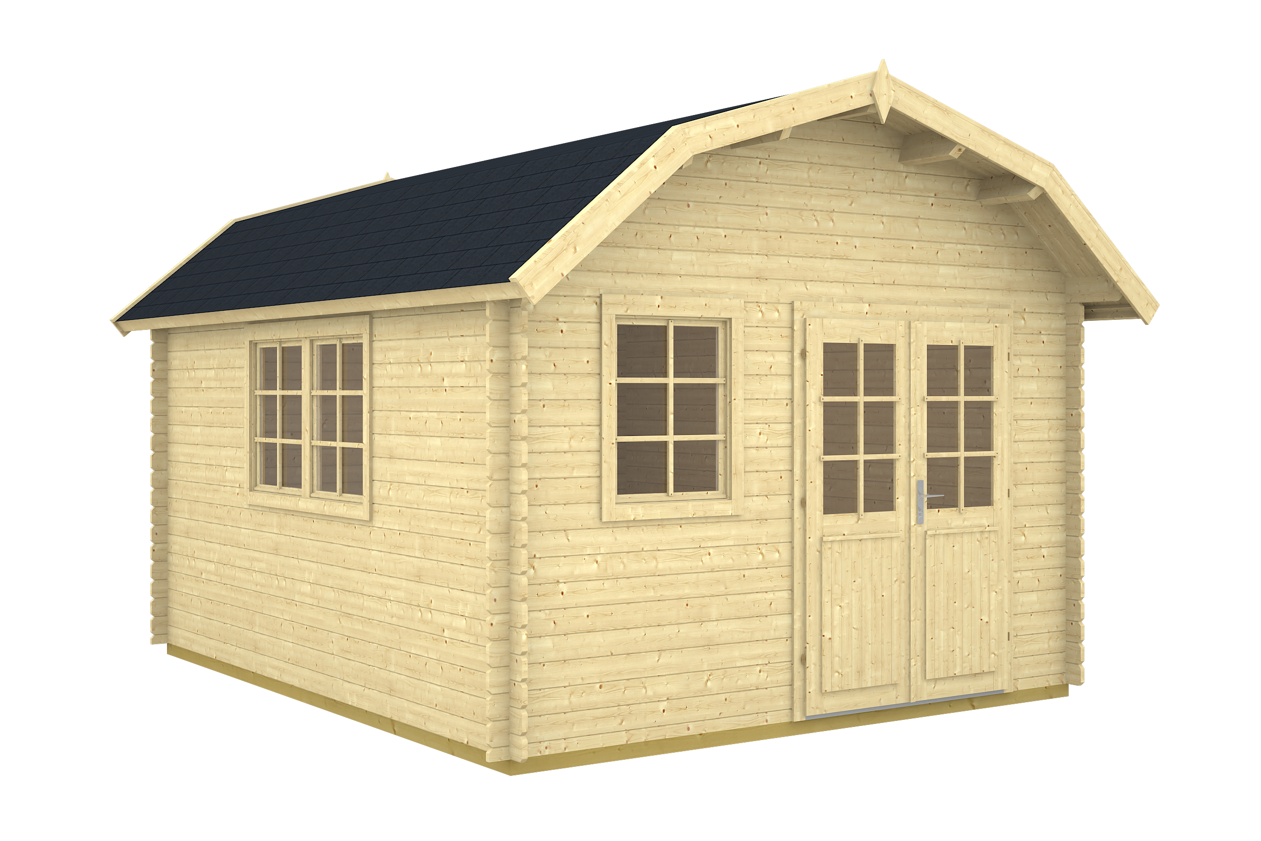 - 1 ⅝" (40 mm) thick double tongue-and-groove wall logs